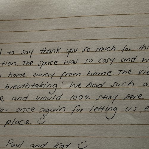 What a fantastic place, everything is just perfect, the room, views and that Bread! you just can't beat it. Thankyou so much!! you have made our anniversary just fantastic. We look forward to coming back next year! To anyone who reads this, take it from us & spend 2 nights, 1 is just not enough."